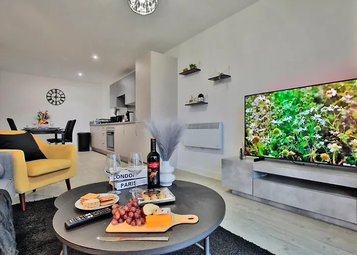 Denne leiligheten ligger i Salford distriktet i Manchester Boligen ligger nesten 2 km fra Vitenskaps- og industrimuseum. Flere restauranter som Beefeater Quay House og Harvester The Lowry ligger innen 600 meter fra Manchester - 2-Bed Apartment - Sleeps 4 - Wifi. Nasjonalt fotballmuseum kan nås på noen få minutter med bil.